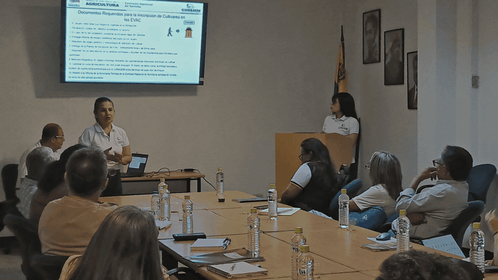 La jornada, organizada por la Comisión Nacional de Semillas (CONASEM), reunió a actores clave del sector agrícola nacional, incluyendo a la Dra. Margaret Gutiérrez, Comisionada del MPPAPT, para la CONASEM y Presidenta del INIA; y a Oscar Robles, responsable de la Secretaría Técnica de la CONASEM y Gerente de Producción Social del INIA. El principal objetivo de la reunión fue validar el protocolo operativo que guiará los ensayos, asegurando así la rigurosidad técnica y la relevancia de los cultivares a evaluar.