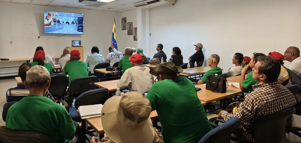 (Prensa INIA) Desde la sede administrativa del Instituto Nacional de Investigaciones Agrícolas (INIA), organismo adscrito al Ministerio del Poder Popular para la Agricultura Productiva y Tierras (MPPAPT), los Consejos Campesinos del estado Aragua, participaron en una videoconferencia de carácter estratégico con el ministro de la cartera agraria, Julio León Heredia y todos los voceros y voceras electos en las Elecciones Estadales de la Unión Nacional Campesina Ezequiel Zamora a nivel nacional.